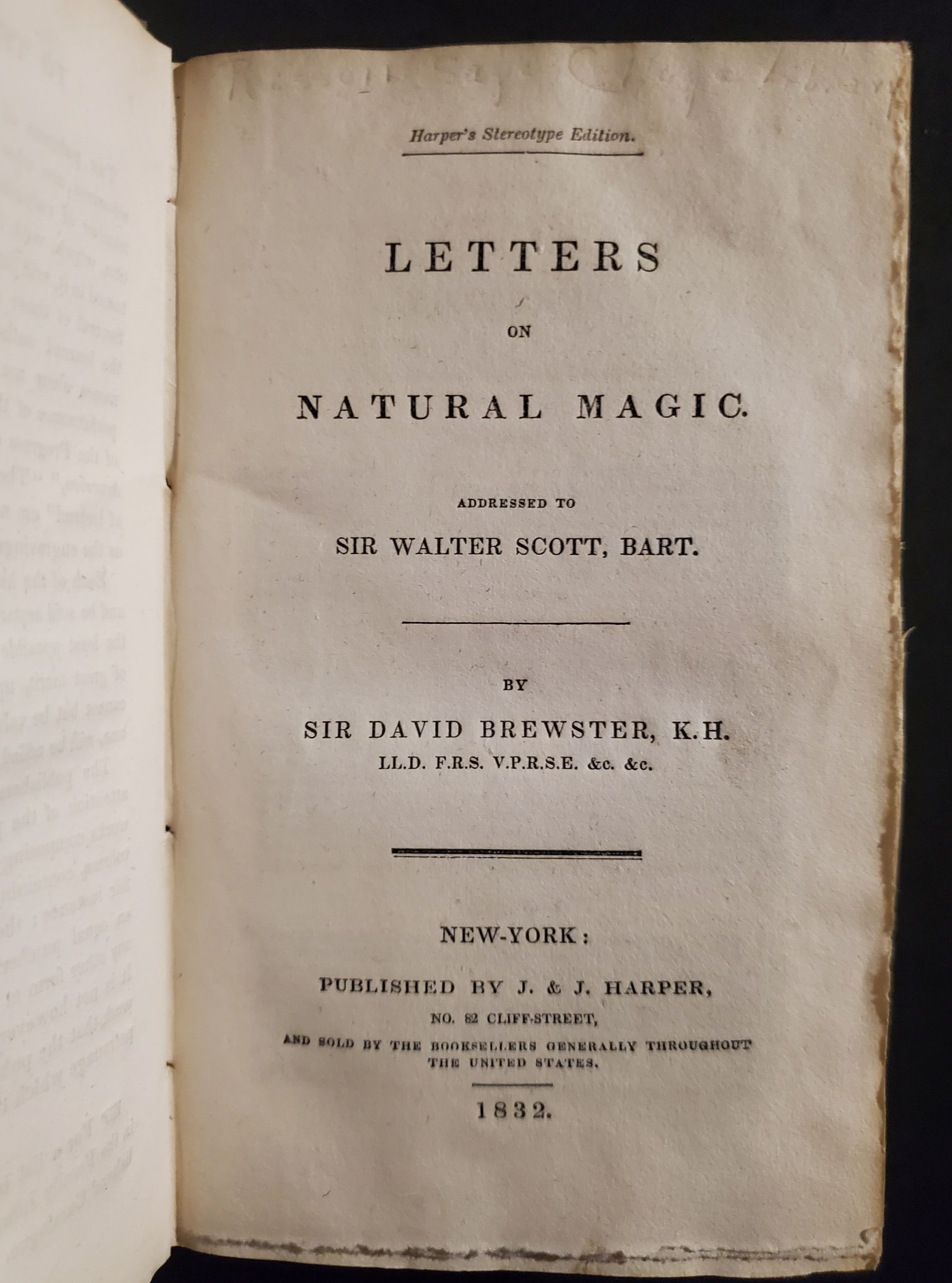 1833 ~ BREWSTERS LETTERS ON NATURAL MAGIC SCIENTIFIC MARVELS RARE OCCULT BOOK