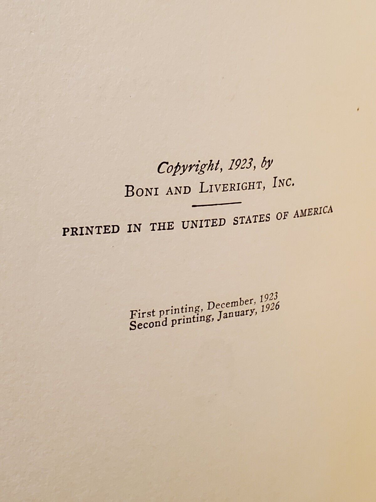 Published by Boni & Liveright, 61 West 48th Street, New York, 1926