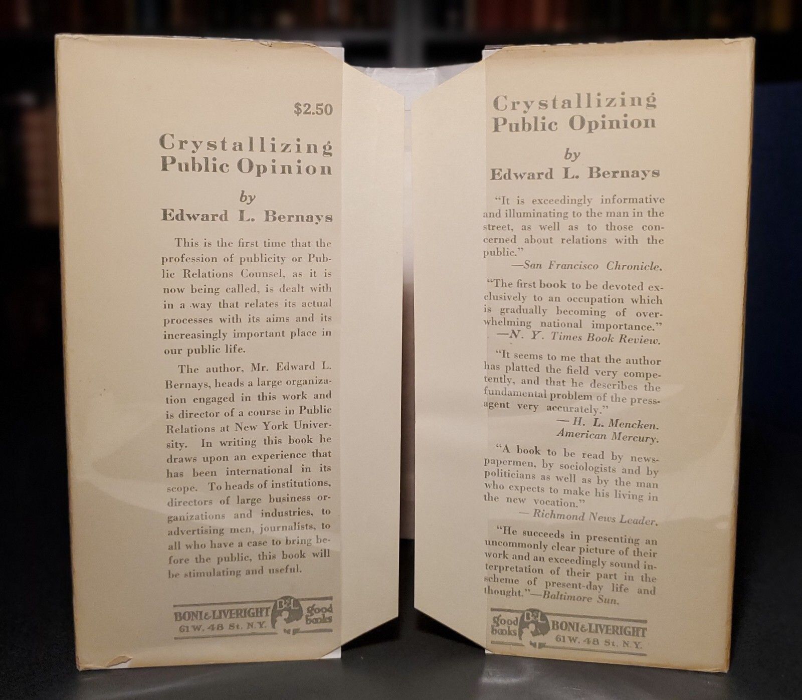 CRYSTALLIZING PUBLIC OPINION by Edward L. Bernays 1st First Ed. ~ 2nd Print 1926