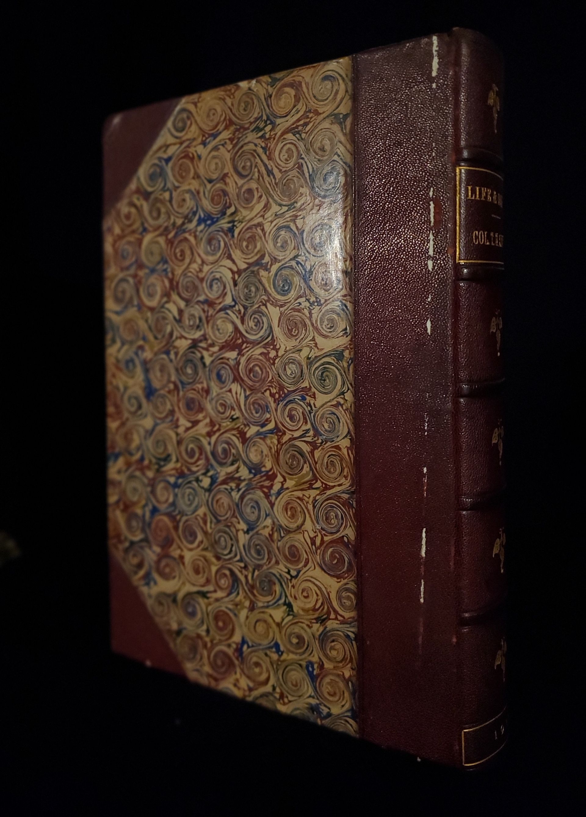 Rare 1st edition, in a nicely preserved half calf leather binding. The interior pages are clean and bright with some minor toning as shown. There is light rubbing/bumping to corners and edges, and minor shelf wear to the boards, spine and extremities as shown in our photos. The binding and hinges are in good condition.