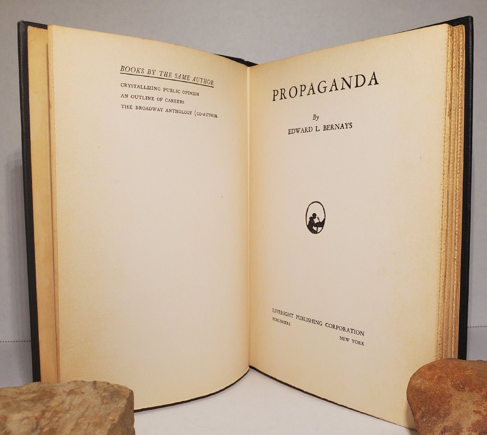 Scarce 1st edition, 4th printing of the groundbreaking classic on propaganda and public relations. Good to very good condition. Clean interior pages with no writing or underlining. Minor toning present. Gilt lettering design to both front cover and spine head. Overall wear and aging (toning to pages, minor bumping to corners) as shown in our photos. Shrink wrapped immediately after listing and ready to ship!