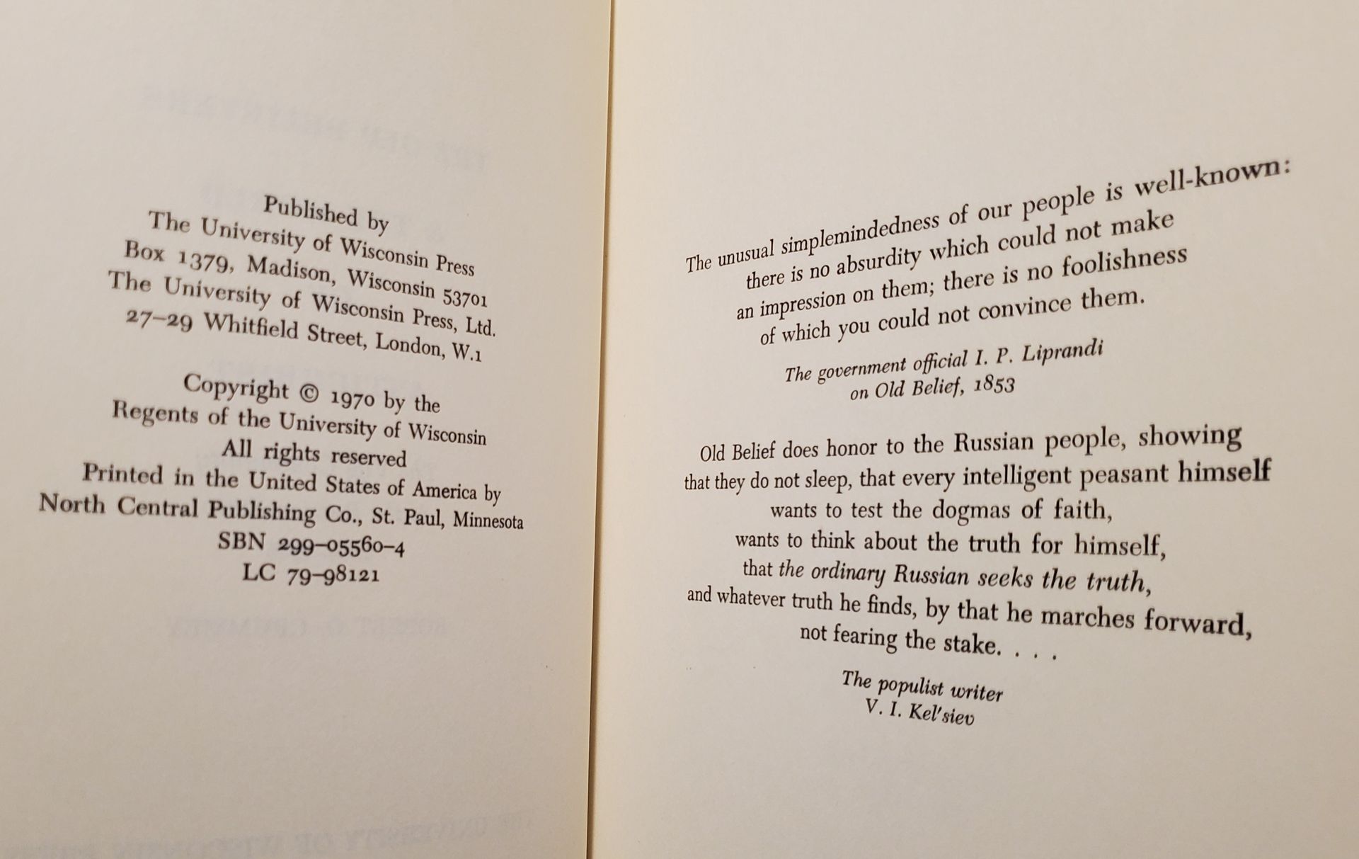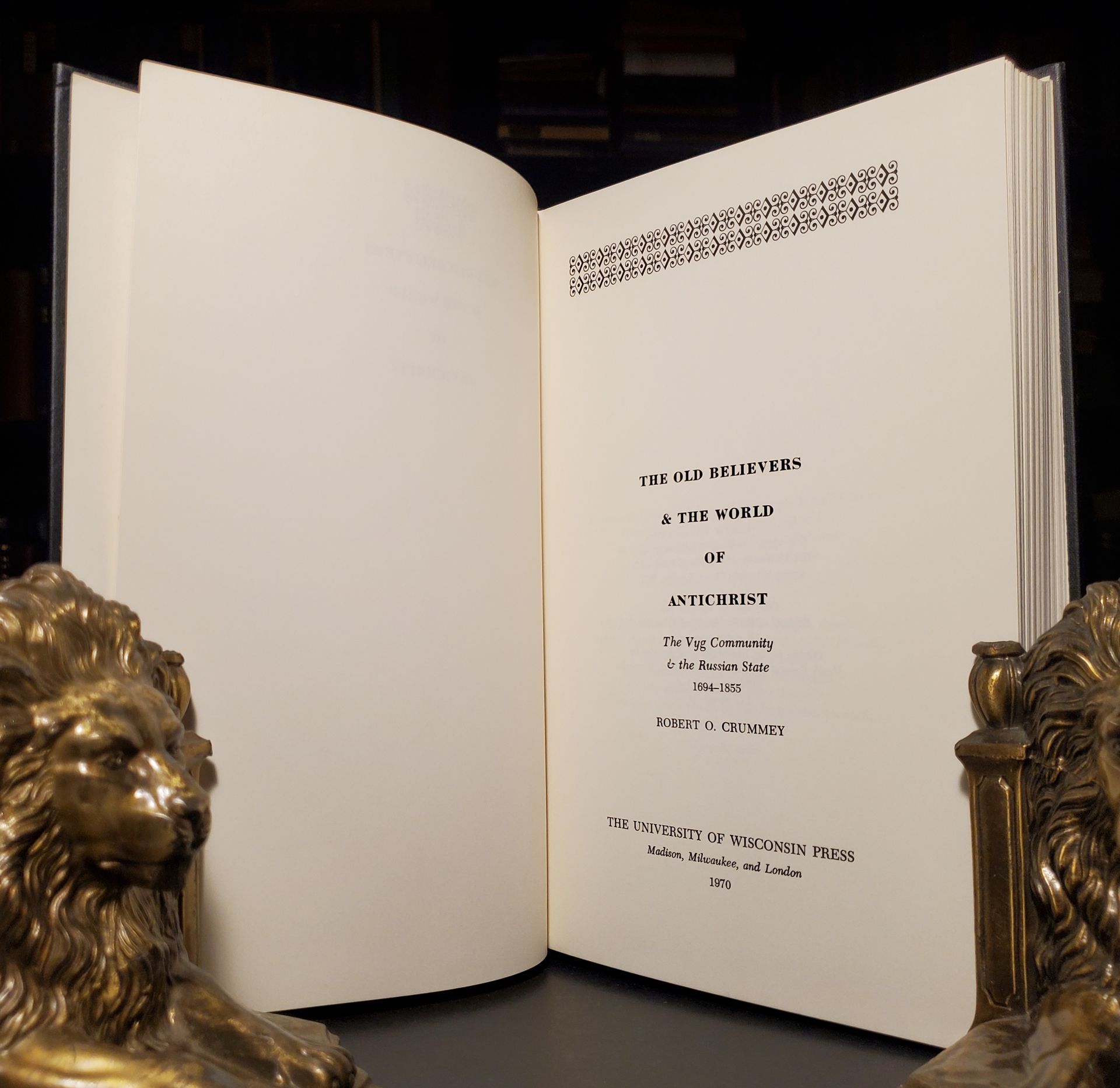 The Old Believers & The World of AntiChrist ~ By Robert O. Crummey ~ 1970 Hardcover w/ Dust Jacket ~ Wisconsin Press