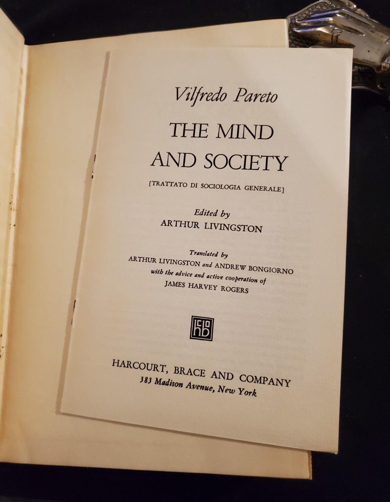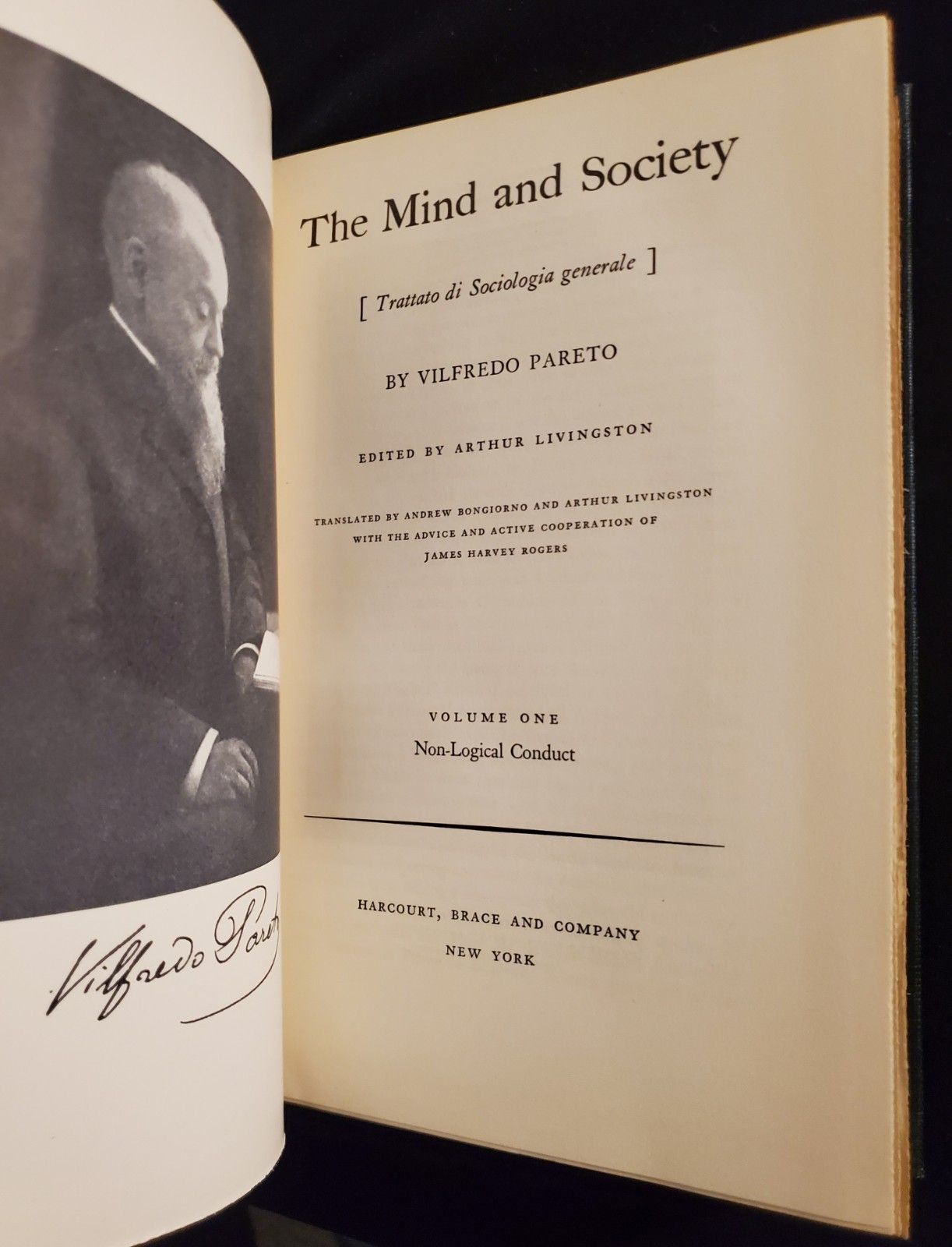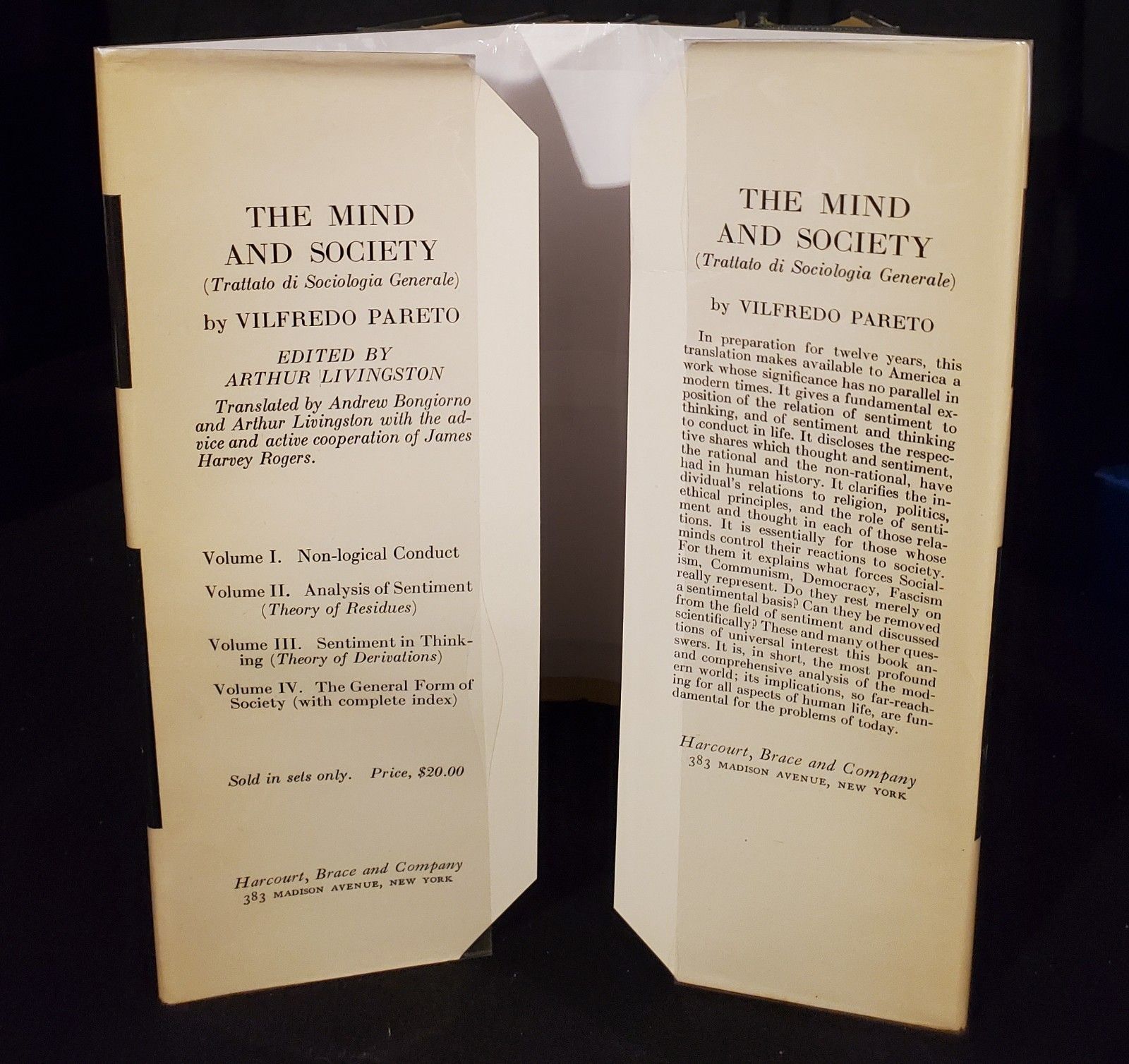 The Mind and Society [Trattato di Sociologia Generale] Vol 1,2,3,4 : COMPLETE FIRST EDITION SET