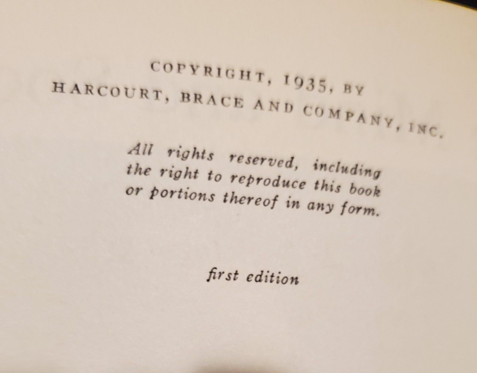 Published by Harcourt, Brace and Company, New York, 1935